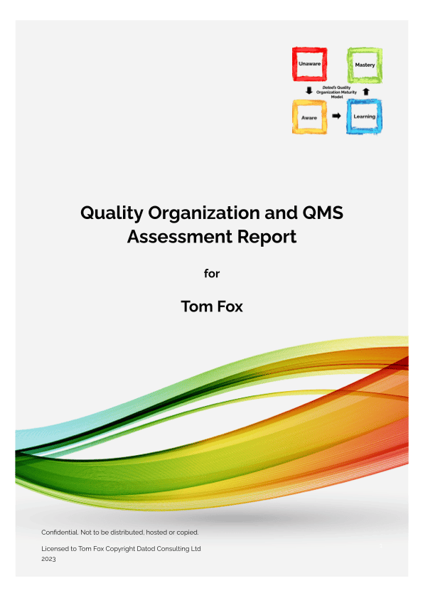 - Aligned with the guidance in "Transforming Quality Organizations: A Practical Guide." by Matthew P. Wictome & Ian Wells (2023, Business Expert Press, New York).
